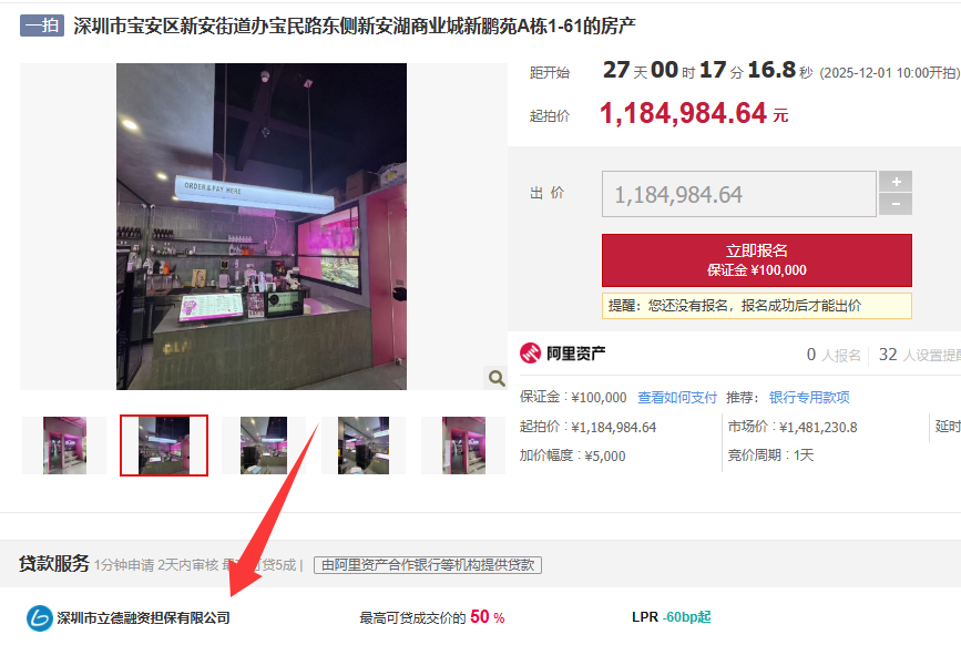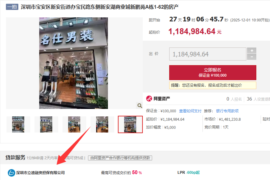 该房源的抵押权人是邮政银行,立德作为银行和阿里拍卖广东省指定服务商,我们致力为银行快速处置不良资产。