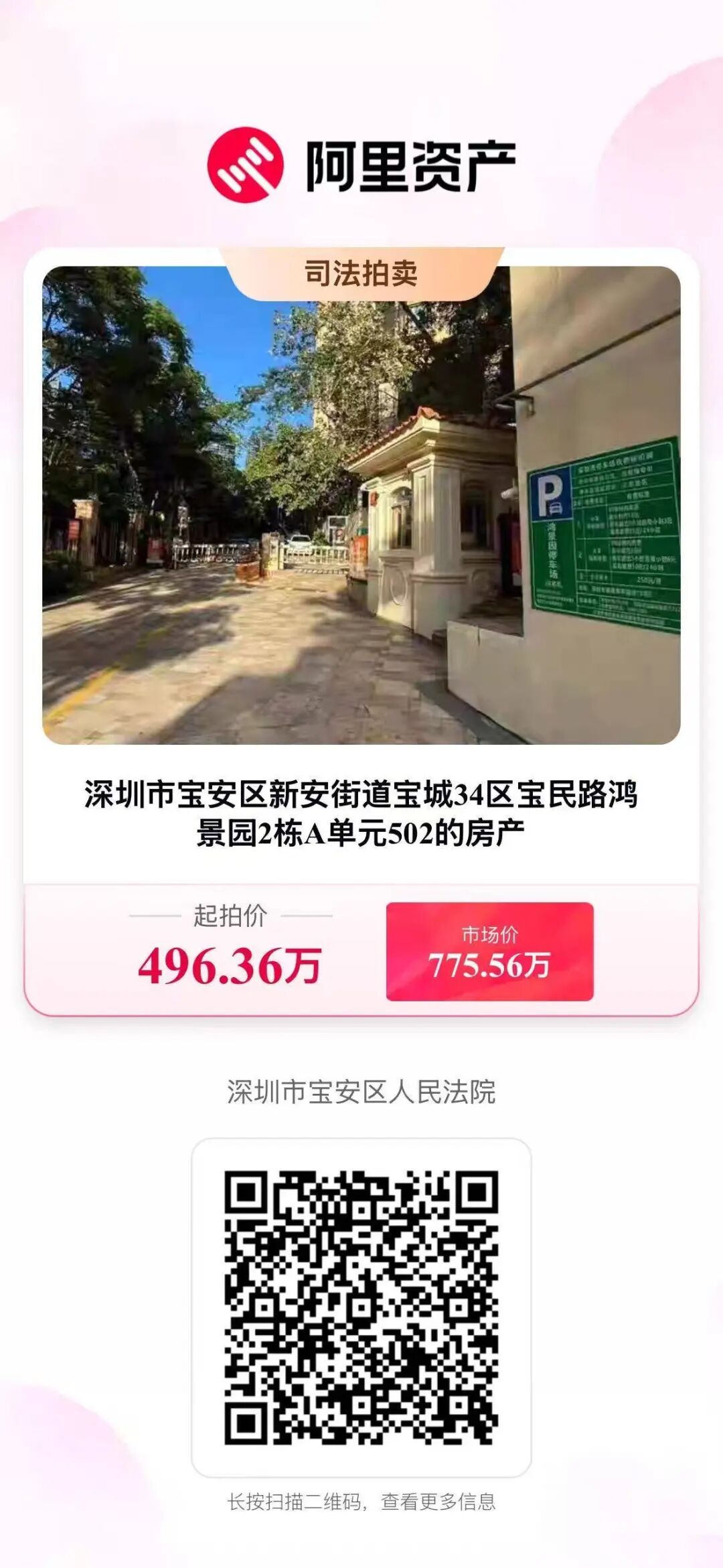 拍卖标的:深圳市宝安区新安街道宝城34区宝民路鸿景园2栋A单元502