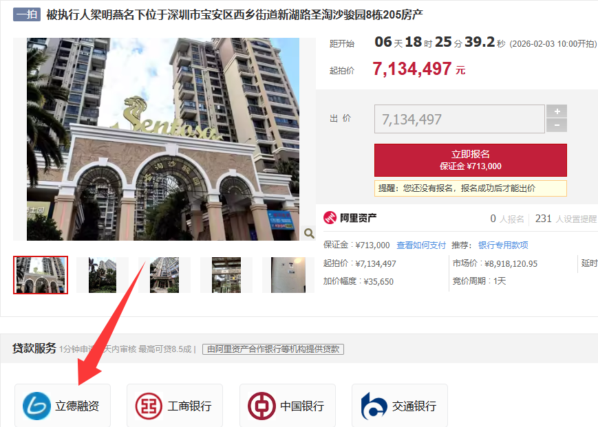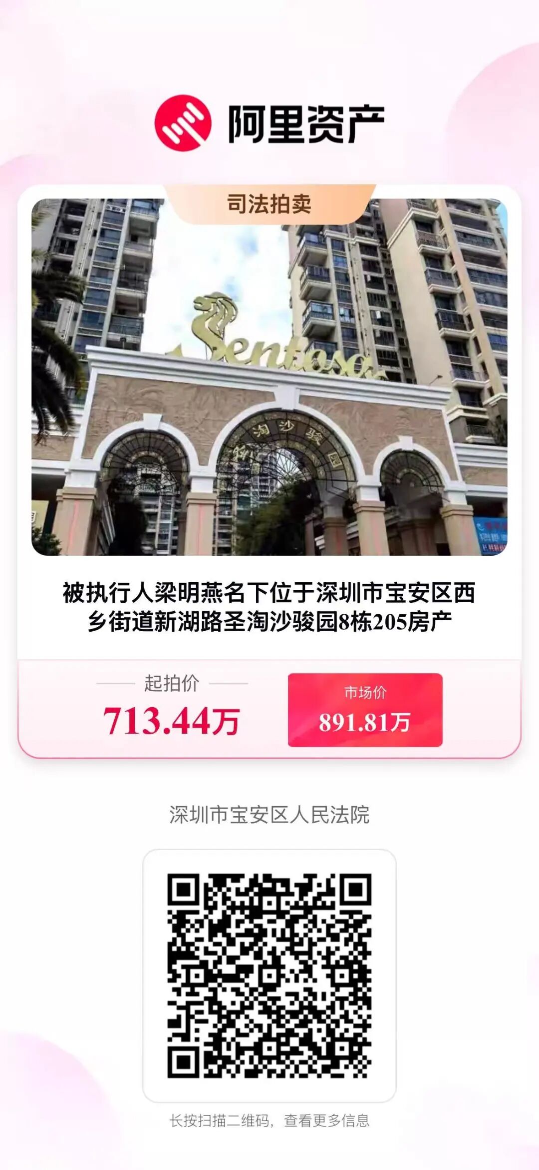 拍卖标的:深圳市宝安区西乡街道新湖路圣淘沙骏园8栋205