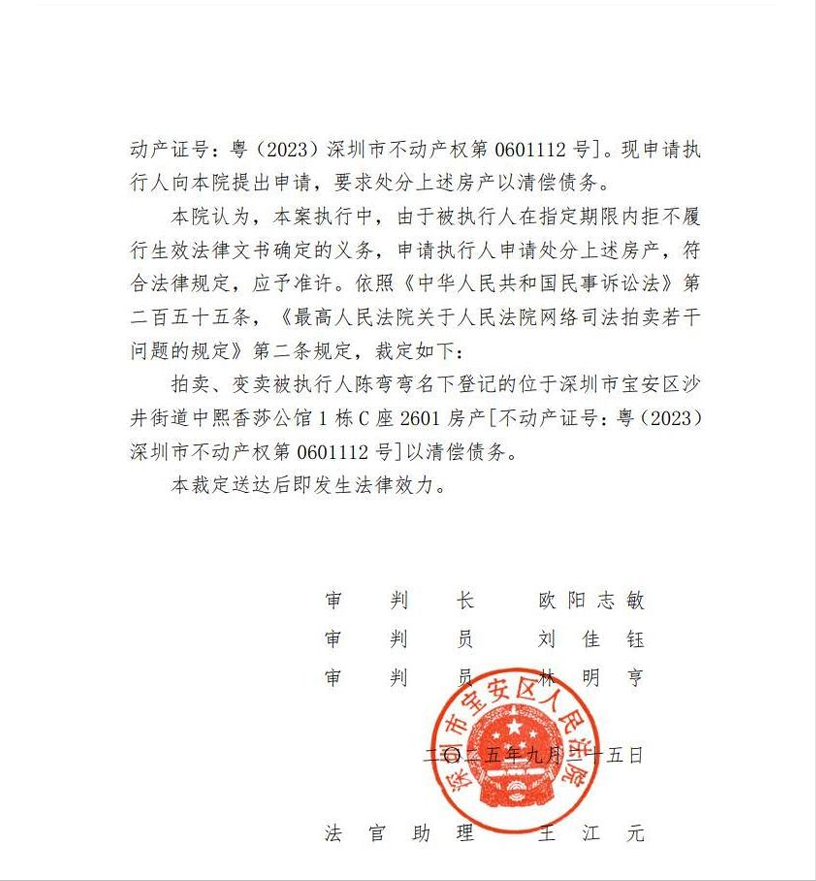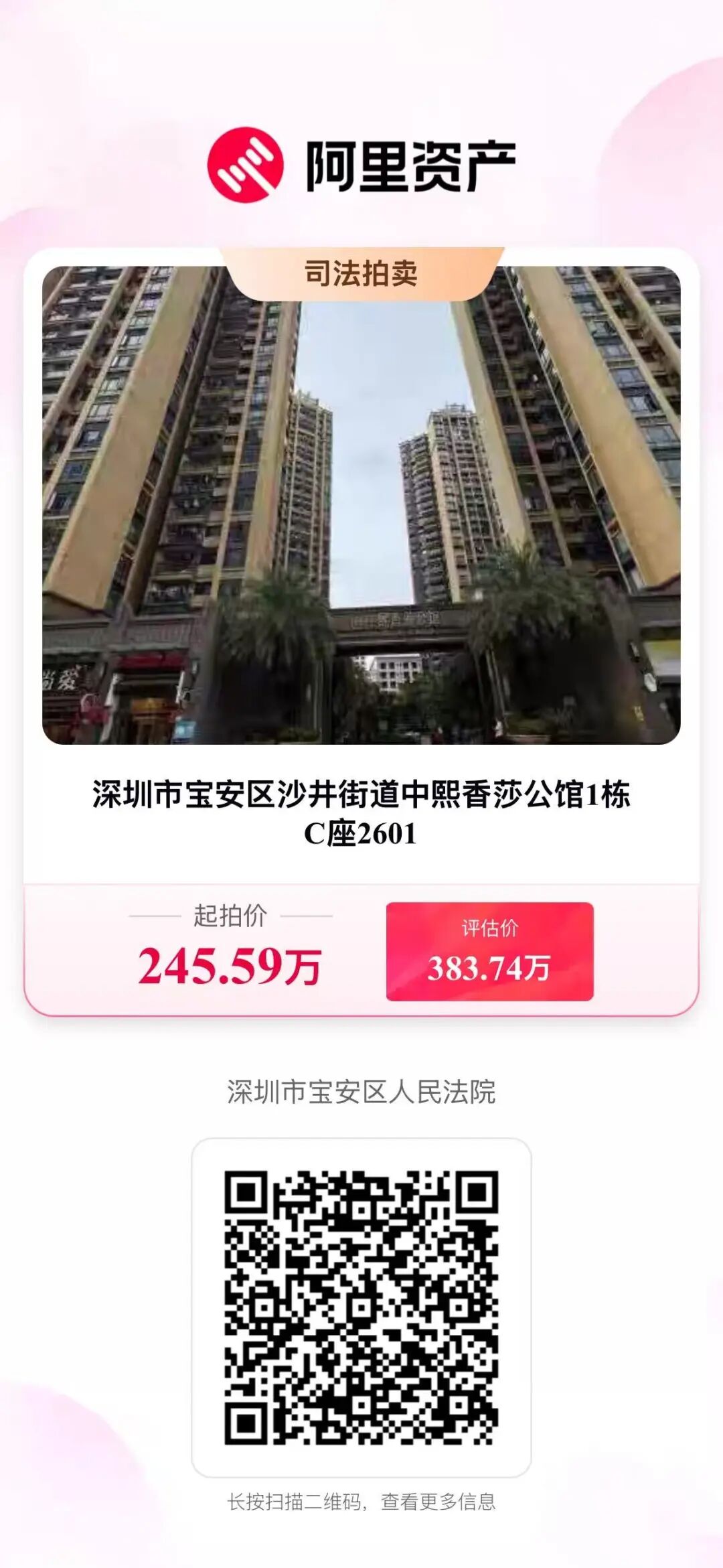拍卖标的:深圳市宝安区沙井街道中熙香莎公馆1栋C座2601