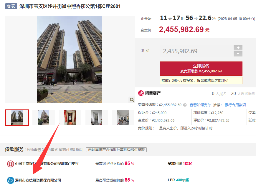该房源的抵押权人是中国银行,立德作为银行和阿里拍卖广东省指定服务商,我们致力为银行快速处置不良资产。