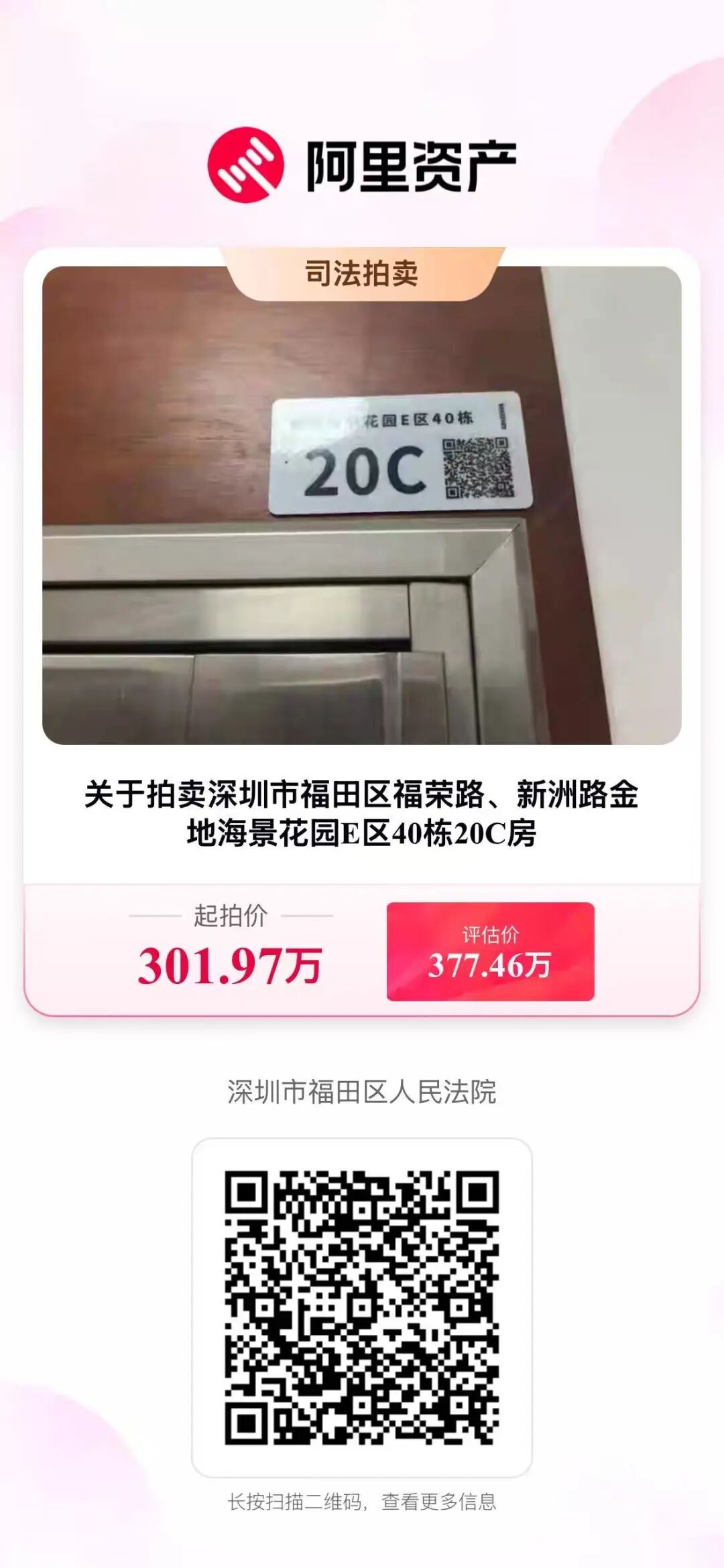 拍卖标的:深圳市福田区福荣路、新洲路金地海景花园E区40栋20C