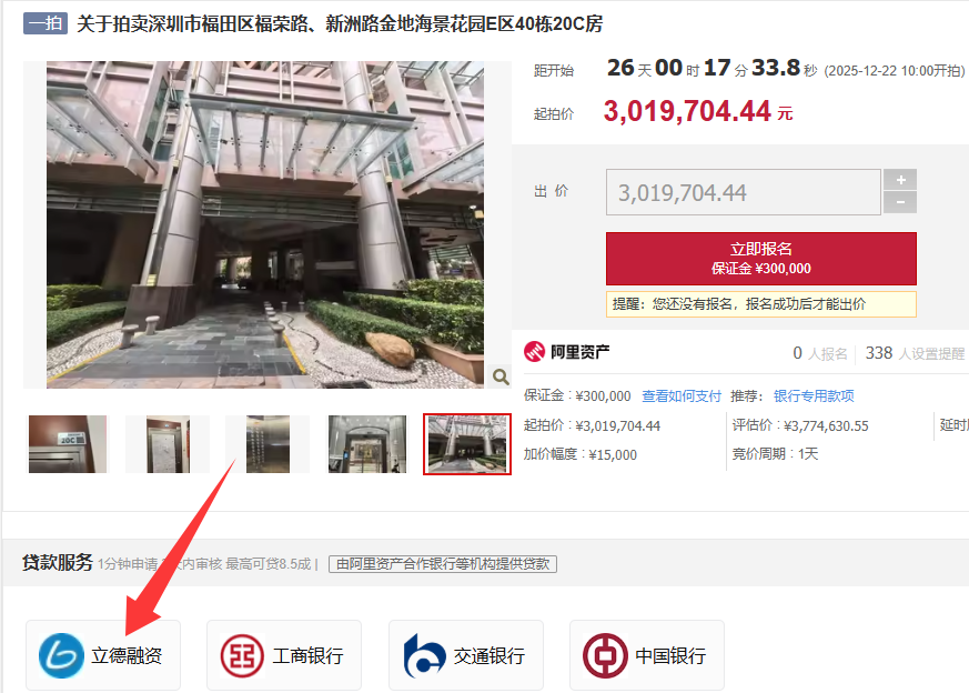 该房源的抵押权人是邮储银行,立德作为银行和阿里拍卖广东省指定服务商,我们致力为银行快速处置不良资产。