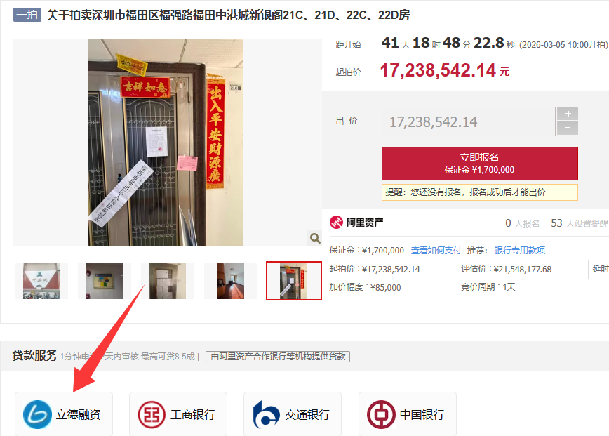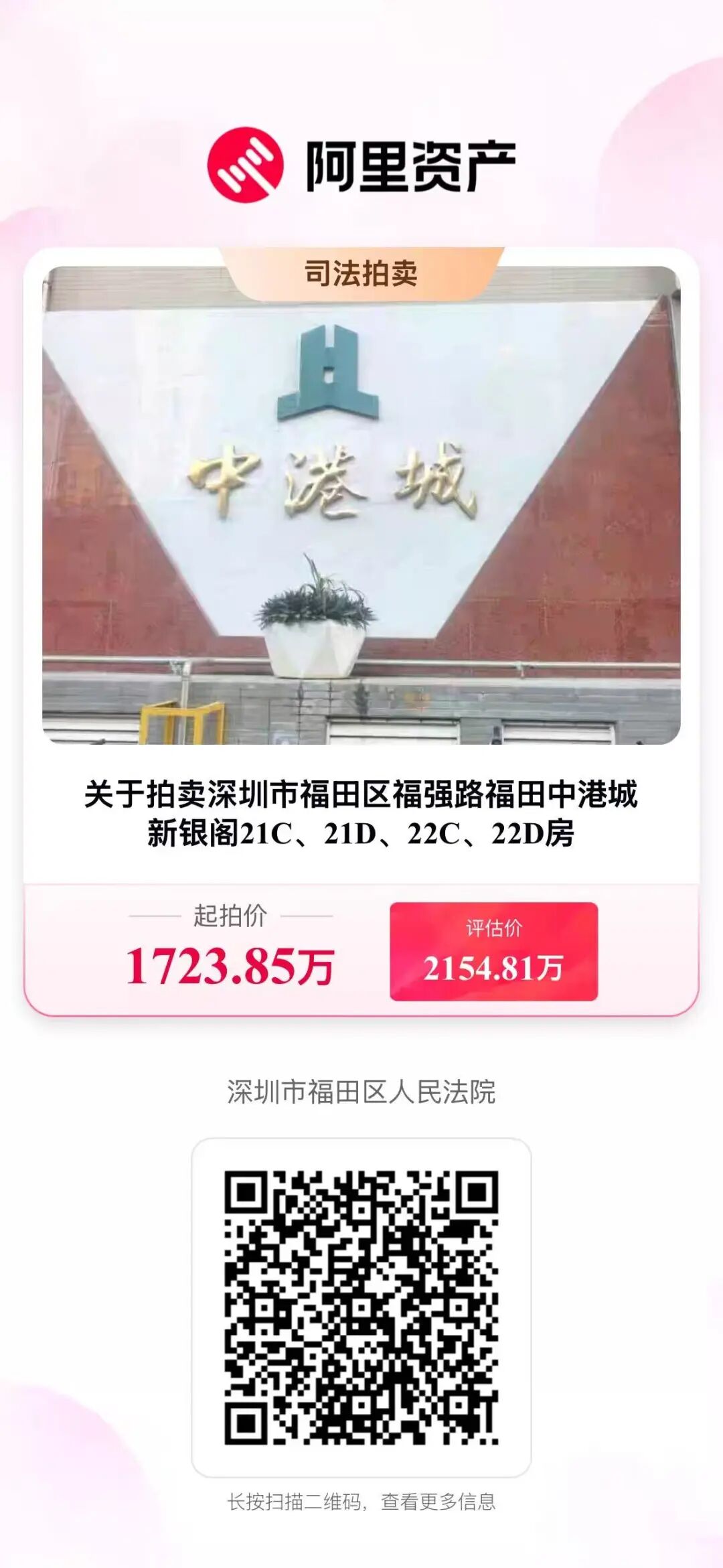 拍卖标的:深圳市福田区福强路福田中港城新银阁21C、21D、22C、22D