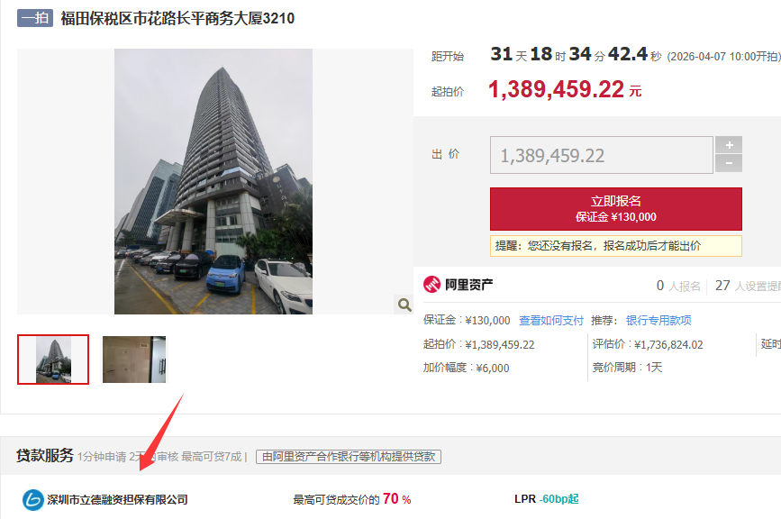 拍卖标的:福田保税区市花路长平商务大厦3210