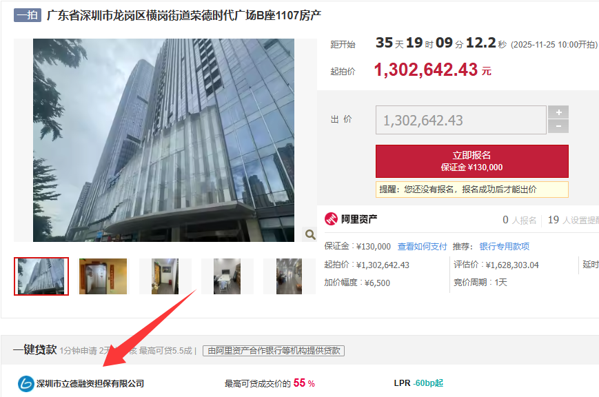 拍卖标的:深圳市龙岗区横岗街道荣德时代广场B座1107