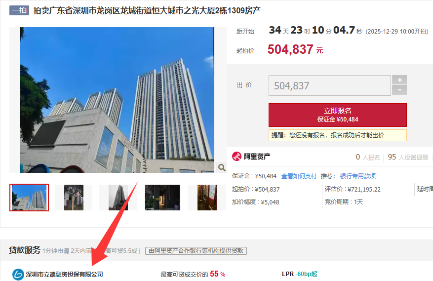 拍卖标的:深圳市龙岗区龙城街道恒大城市之光大厦2栋1309