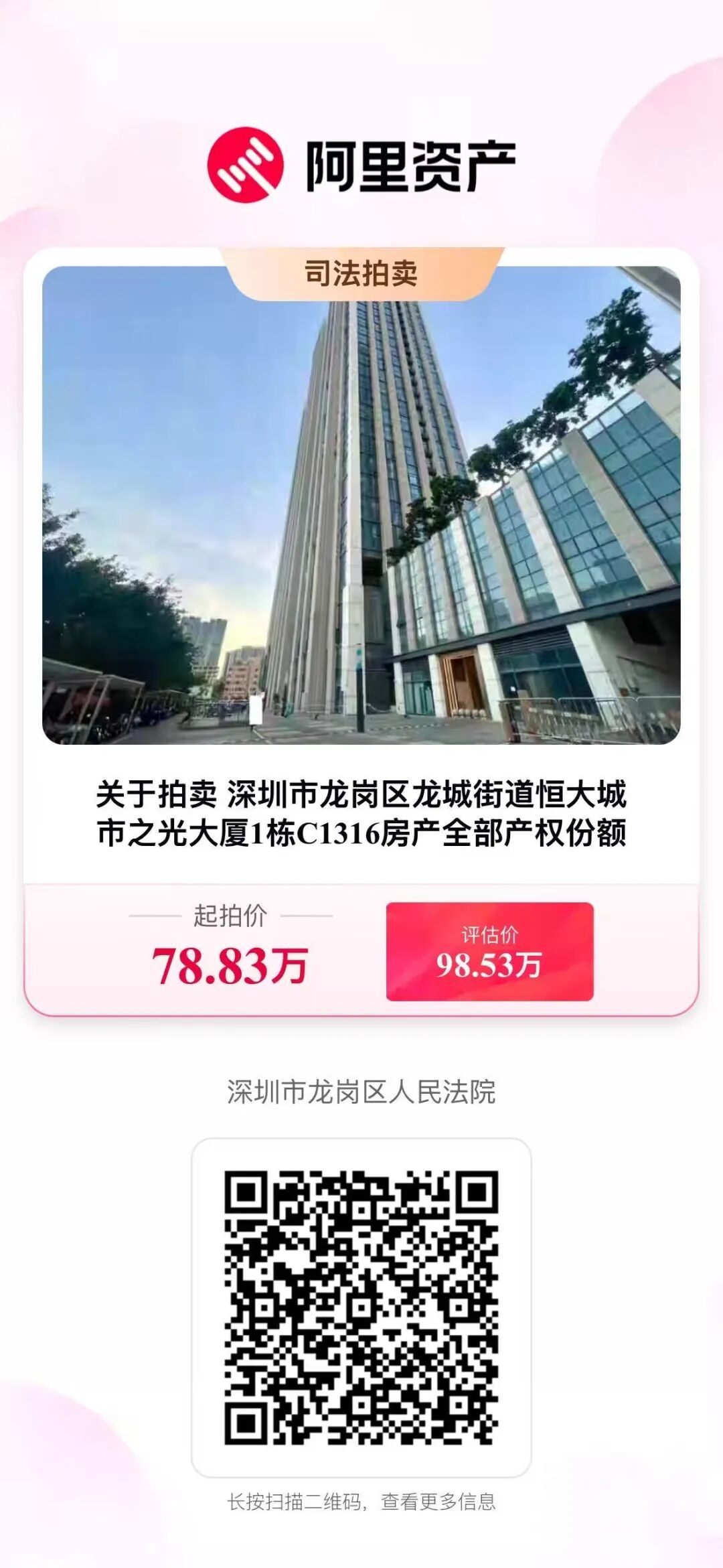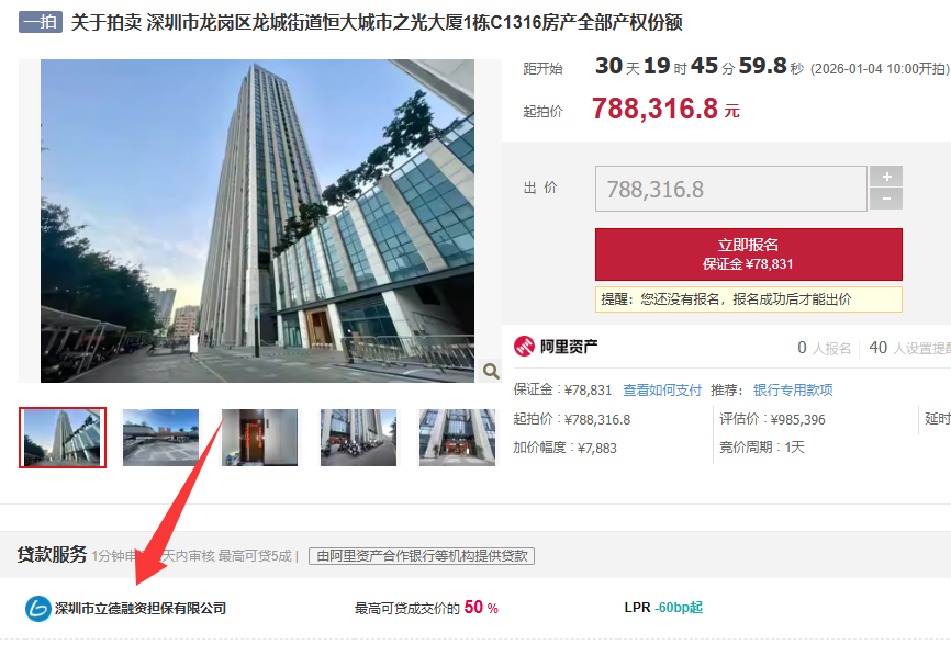 拍卖标的:深圳市龙岗区龙城街道恒大城市之光大厦1栋C1316