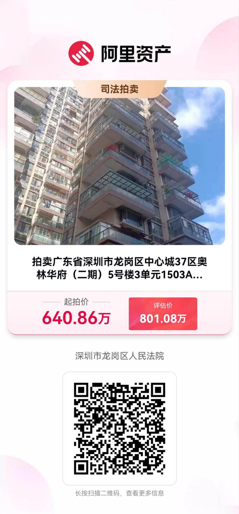 拍卖标的:深圳市龙岗区中心城37区奥林华府(二期)5号楼3单元1503A、1503B