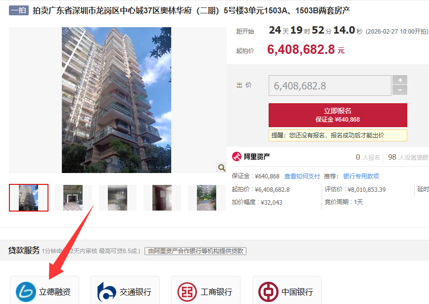 该房源的抵押权人是邮储银行,立德作为银行和阿里拍卖广东省指定服务商,我们致力为银行快速处置不良资产。