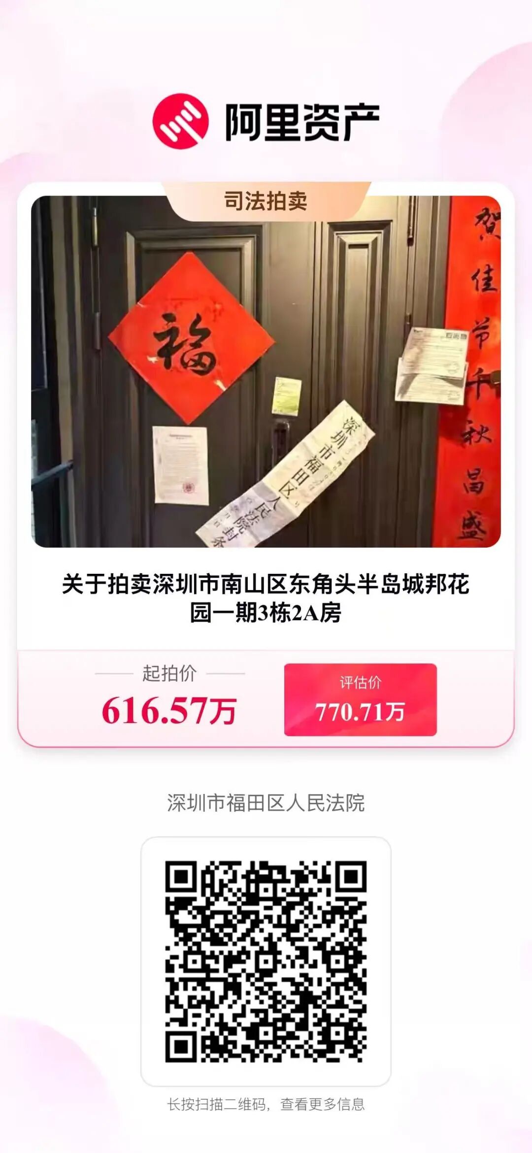 拍卖标的:深圳市南山区东角头半岛城邦花园一期3栋2A