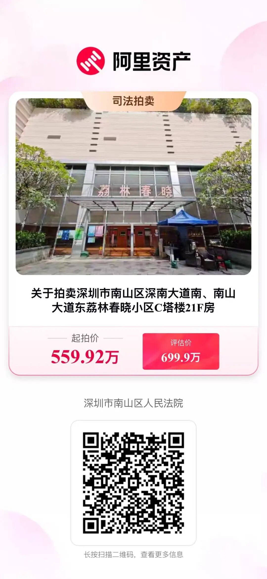 拍卖标的:深圳市南山区深南大道南、南山大道东荔林春晓小区C塔楼21F