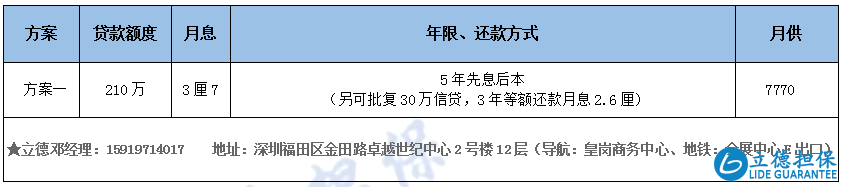 但唯一有顾虑的是,自已房产当时有90万是公积金贷款利率比较低,而且赎楼金额大觉得成本也大。通过朋友联系上立德担保邓经理,邓经理根据邓总夫妻资料情况经过房产评估后,推荐一个二押方案,如下: