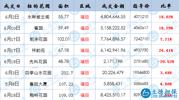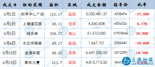 目前小编仅统计6月份数据,截止到18号,放出的福田及龙岗房源最多。跟政府参考价格相比,福田法拍成交价格基本高于参考价,比率最高至24%。价格还是比较坚挺,跟市场上所说学位过剩逃离深圳事实还是有很大水份。