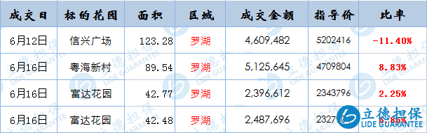 相比其他区域,罗湖受政府指导价的影响是最小的。这个月成交的住宅公4套,除大户型信兴广场以外,其余基本跟指导价持平。